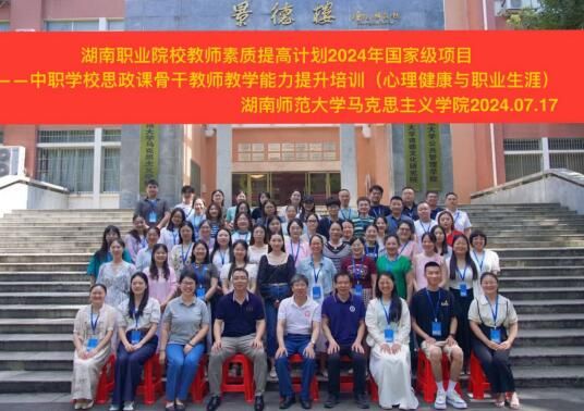 7月17日,由湖南省教育厅主办、我院承办的湖南省职业院校教师素质提高计划2024年国培项目--中职学校思政课骨干教师教学能力提升培训(心理健康与职业生涯)在景德楼顺利开班。学院党委书记陈红桂、副院长陈德祥参加开班典礼,张燮老师主持开班仪式。