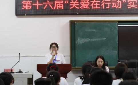 此次活动分为三部分:校长致辞、队长讲话、图书捐赠。活动伊始,预初一、预初二各班学生在各班班主任的带领下排队入场。主持人杨菁宣布仪式开始,青烟中学校长周晓华对“关爱在行动”实践团以及青烟中学预初一学生的到来表示热烈欢迎,并介绍了暑期兴趣班的课程内容及重要意义。队长熊召鑫表达了来到青烟中学开展“三下乡”暑期社会实践活动的喜悦,她代表全体队员感谢青烟中学领导老师以及社会各界爱心人士对于实践团的大力支持与帮助,展现出建设好此次支教活动的决心。