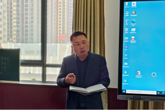 谭伟容介绍了关于实习课程教学工作的详细安排,要求实习老师严格遵循“三个一”标准,能够做到独立完成一份完整教案、一套精美课件、一次全真试讲,做好备课、试课、评课,练就思政教师的真本领。