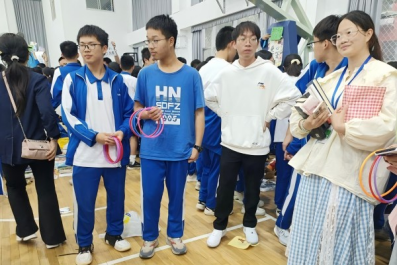 活动开始前,各班学生在实习队员和班主任的指导下,于体育馆内划分区域布置摊位,有序陈列义卖物品。义卖商品涵盖手办周边、玩偶公仔、二手书籍、书法作品、手工制品及学习用具等,种类丰富。部分班级还创新设计了互动环节,如套圈游戏、扳手腕挑战、模拟刮奖等,吸引了大量师生驻足参与。活动期间,各摊位前气氛活跃,师生协力推销商品,实习队员积极协助组织,展现出良好的团队协作能力。活动结束后,剩余物资经分类整理后统一捐赠。
