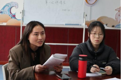 实习老师周新奕、覃安琪和宋颖对当天新授课依次进行自评,由相应任课老师结合教学实际逐个点评,提出优化方向,其他实习队员进行补充说明。