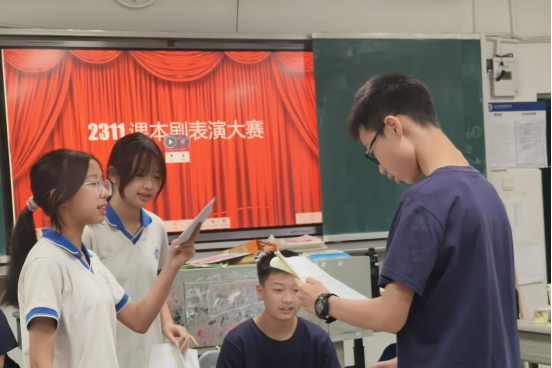 (通讯员 周新奕 陈雅琪 姜文婷)为激发学生英语学习兴趣,提升语言应用与创新实践能力,5月6日至7日,长雅中学初二年级各班于本班教室开展校园英语课本剧展演活动。此次活动由长雅中学初二年级英语教研组统筹策划,我院赴长雅中学实习队部分成员协助开展,长雅中学全体初二学生参与活动。