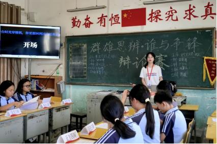 (通讯员 唐卓雅 朱佳丽 蔡梓怡)7月12日上午,我院“关爱在行动”暑期社会实践团在汨罗市任弼时红军学校中学部,面向该校“关爱一班”“关爱二班”学生开展“群雄思辨,谁与争锋”主题辩论赛。