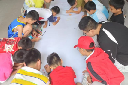 活动中,20名实践团成员充分发挥多学科优势,紧扣“五育并举”核心理念,精心打造涵盖德育、智育、体育、美育、劳育五大主题的系列课程。课程形式多样,内容丰富,精准聚焦社区留守儿童全面发展需求。体育课程以趣味接力赛为载体,激发孩子们的运动热情,在奔跑与协作中培育团队精神;德育课堂“认识我自己”,引导学生探索自我认知,并通过集体绘画在巨型横幅上表达独特个性,深化自我认同;美育实践则通过手工制作珠串手链,锻炼动手能力,激发审美创造力;卫生健康教育聚焦青春期主题,以科学、适龄的方式讲解生理知识,传授爱护自身、尊重他人的重要理念,为孩子们的健康成长保驾护航。