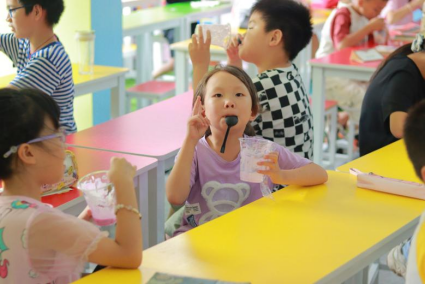 活动筹备阶段,实践团成员采购了各类水果和酸奶,为活动做好充分准备。活动现场,夏令营学生们有序排队,依据个人喜好挑选水果。实践团成员为学生分发勺子、倒入酸奶。大家分组,分工协作,有的搭配水果,有的调配酸奶与水果的比例,一起自制独属自己的水果杯。活动接近尾声,同学们围坐在一起,品尝自己亲手制作的水果杯。他们一边品尝着水果杯,一边分享着活动中的心得。