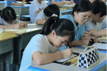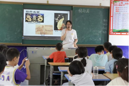 活动聚焦秸秆资源化利用,采取"回收处理+创意加工"双模式推进。在回收处理阶段,实践团深入田间地头,对玉米秆、稻秆等农业废弃物进行回收,通过清洗、晾晒、裁切等预处理工序,为后续资源化利用奠定基础。团队精心组织“秸秆无华,巧手生花”主题手工创作活动,通过现场讲解、互动演示等方式,向村民和儿童普及秸秆焚烧的危害及禁烧政策的重要意义。实践团成员随后耐心细致的指导孩子们运用剪、贴、拼等工艺技巧,将一根根普通的秸秆变身为精美的装饰画和富有创意的手工艺品。孩子们不仅提升了动手能力,也在潜移默化中树立起绿色环保的理念,真切体会到“废弃物”也能焕发新的生命与价值。