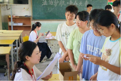 (通讯员 薛佳宇 喻陈曦梓 朱佳丽)7月18日,我院“关爱在行动”暑期社会实践团在任弼时红军学校中学部,面向“关爱一班”和“关爱二班”学生开展“法治护航·青春无毒”禁毒知识宣传实践活动。