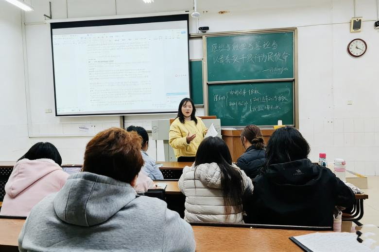 会议伊始,李润芝围绕精准备课、吃透教材这一核心目标展开指导,结合两份不同风格的教案作为实操案例,逐份剖析课本内容的核心知识点、知识脉络搭建逻辑,针对教案中内容衔接、知识点递进、教学逻辑连贯等关键问题,进行了全面的讲解与点拨,帮助实习队员理清教材编排逻辑,找准教学切入点。她表示,备课的核心是立足教材、吃透教材,唯有精准把握教材内涵与知识逻辑,才能打造出高效、严谨的课堂教学设计。在交流环节,实习队员们结合自身备课过程中遇到的困惑、教案撰写的难点,讨论教材解读、教案优化的具体方法。