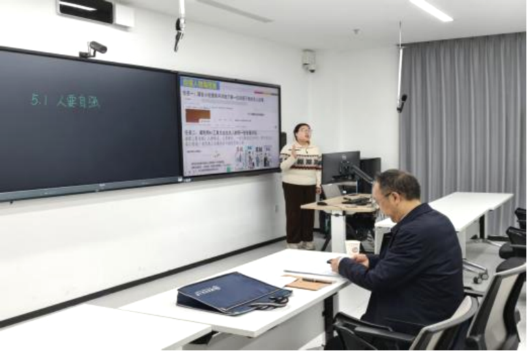 活动中,实习队员依据中学思想政治课程教学标准依次进行授课展示,在运用多媒体教学的基础上,融入案例导入、问题引导与课堂互动等环节,呈现了种教学风格与模式。试讲结束后,凌昀与蒋国海从教学目标、教学环节、语言表达、板书设计等方面对每位队员进行了点评,在肯定其认真态度与教学基本功的同时,就课堂节奏把控、重难点突出及互动设计等方面提出了改进建议。指导老师提出教学需持续打磨,并希望队员们在后续实习中勤于反思、勇于实践,以提升教学实效。