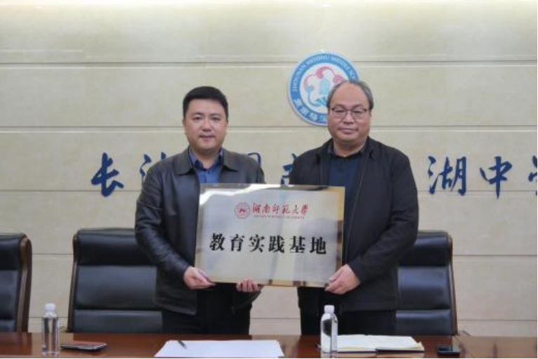 最后,易珊与曹共平共同为周南梅溪湖中学“教育实践基地”揭牌。